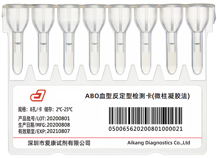 采用微柱凝胶技术,8孔卡设计,适用于临床进行ABO血型反定型的检测